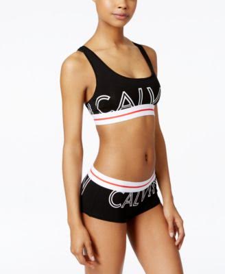 Calvin Klein has revamped the classic bralette and boy shorts set by introducing the Calvin Klein Exposed Logo Collection. Both pieces are made of cotton with elastic waistbands that read the designers first name on the front and last name on the back.