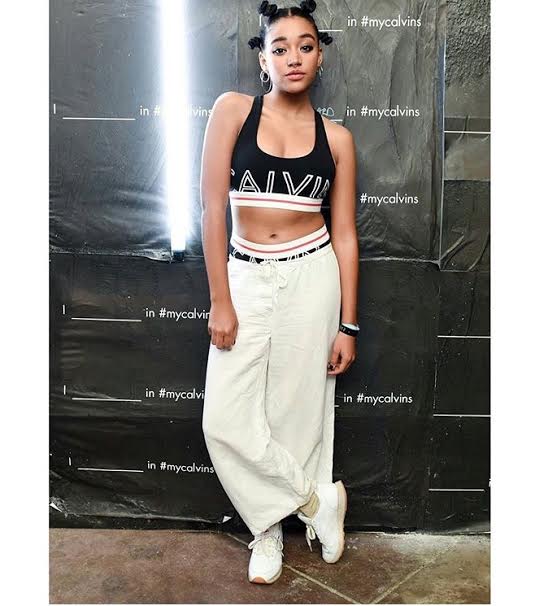 Amandla Stenberg attended Calvin Klein’s In the Desert Coachella Party wearing the brand’s $28 Modern Cotton Exposed Logo Bralette, $22 Boy Shorts and a pair of $74 Reebok Classics: