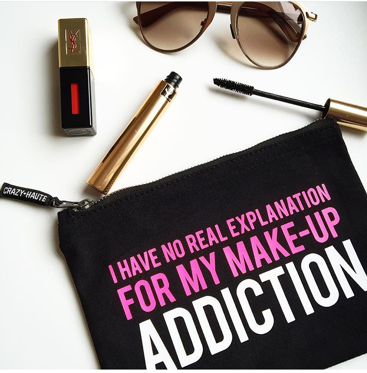 Every makeup enthusiast, aficionado and addict needs a good makeup bag, whether out on the town or just to keep their stashes properly organized. Crazy Haute Make-up Bags are my absolute favorite, as they feature fun tongue-in-cheek phrases and bold colors: