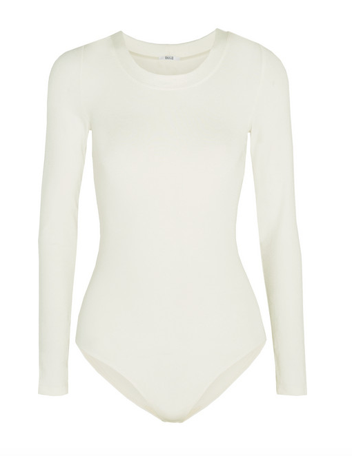 Khloe Kardashian stepped out for a taping of Keeping Up With The Kardashians, cloaked in all white for a quick lunch with Scott Disick at Blue Jam Restaurant. For the occasion, she wore a $240 Wolford ‘Berlin’ stretch jersey bodysuit, $340 Frame Denim ‘Le Skinny De Jeanne’ white mid-rise jeans, a $2,030 Valentino ‘Rockstud Camo’ Flap Clutch, and $725 Christian Louboutin ‘So Kate’ Pumps.