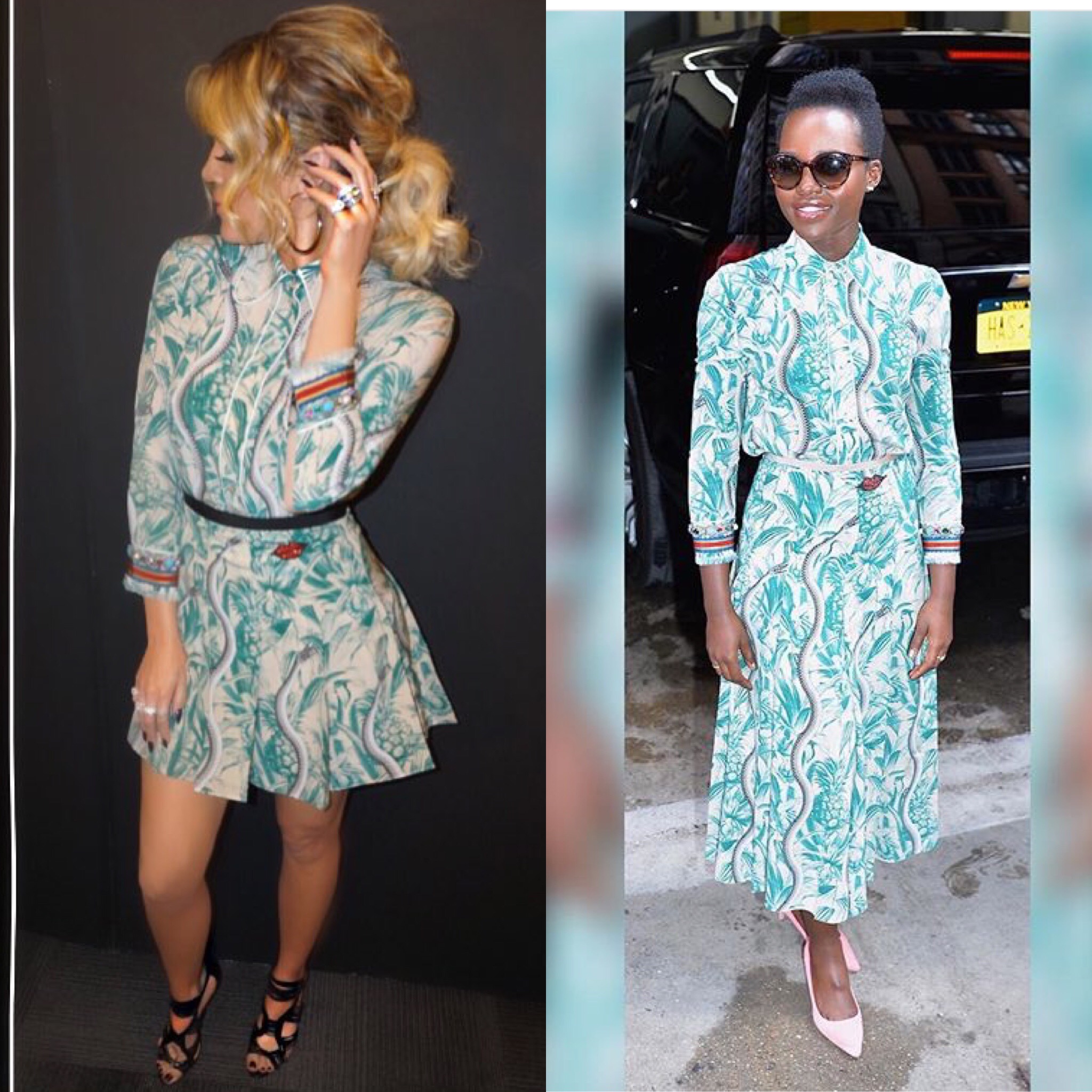 Personally, I’m feeling both ladies’ looks! Although not the exact same item, both ladies were going for that full floral look! What do you think? Who wore it better?