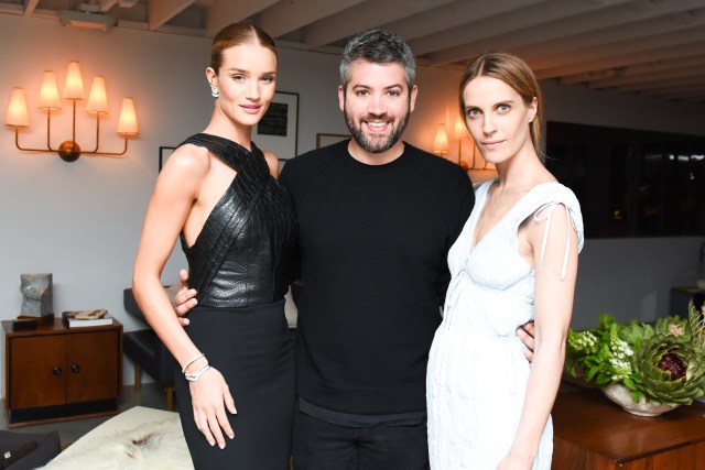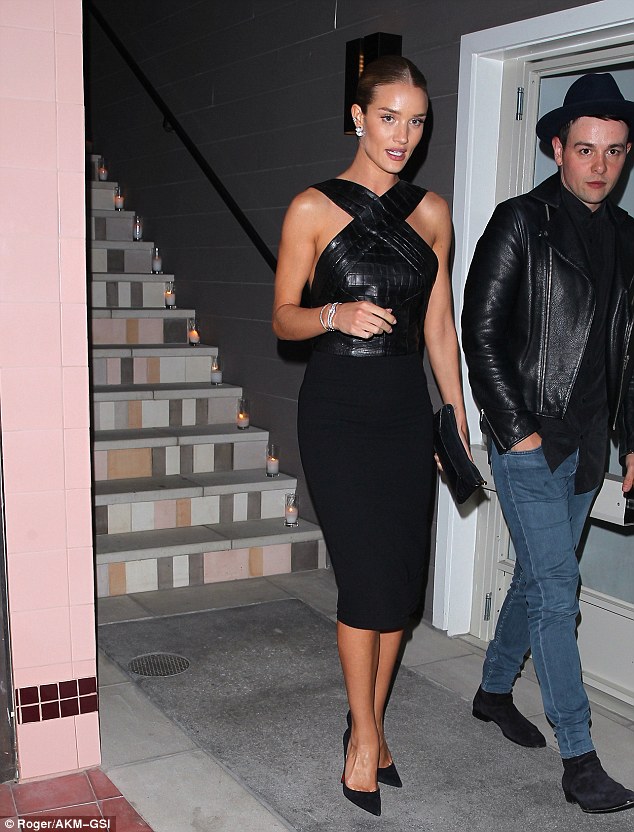 Rosie Huntington-Whiteley attended designer Brandon Maxwell’s New York toasting to his upcoming Spring collection wearing a pair of black Louboutins and a Brandon Maxwell black leather top and skirt from his Spring ’16 line:
