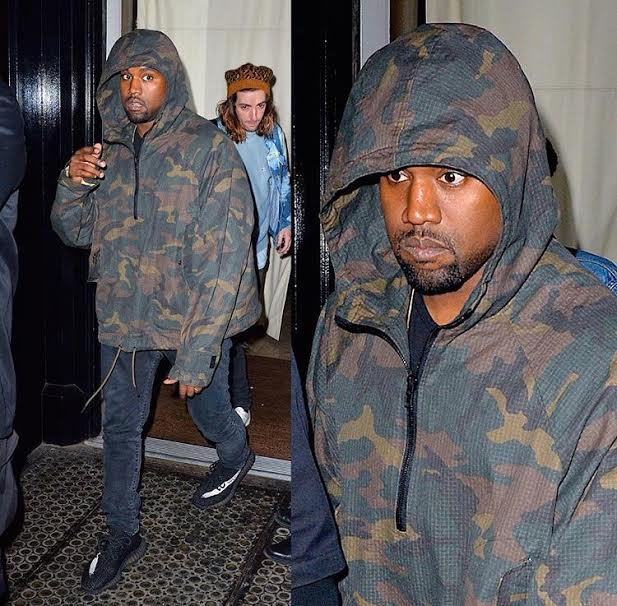 Kanye West walked through the streets of New York City wearing a $1,625 Yeezy Season 1 Brown and Green Camouflage Jacket: