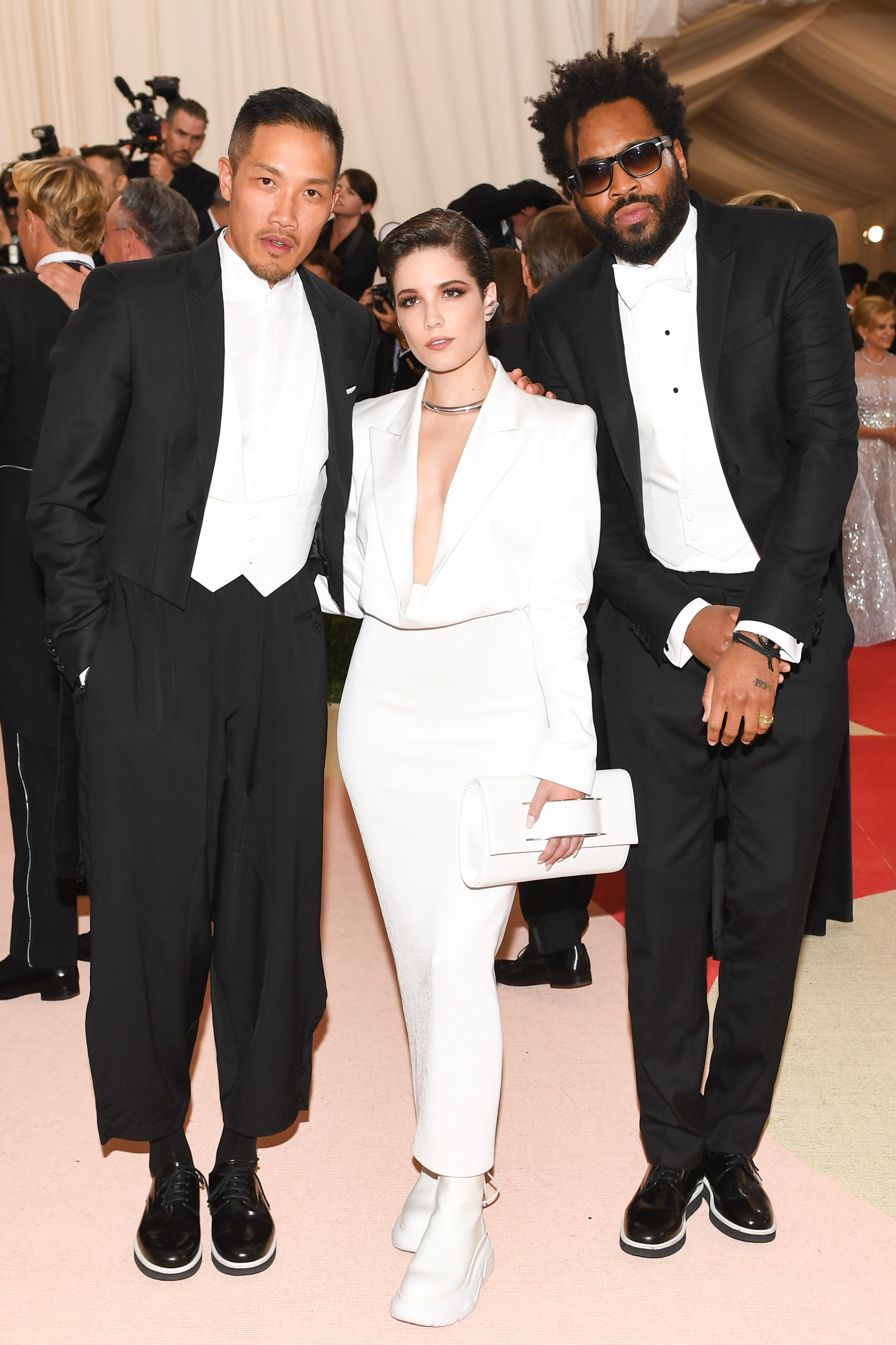 Halsey wore a custom white DKNY look, alongside the brand’s designer Dao-Yi Chow and Maxwell Osborne.