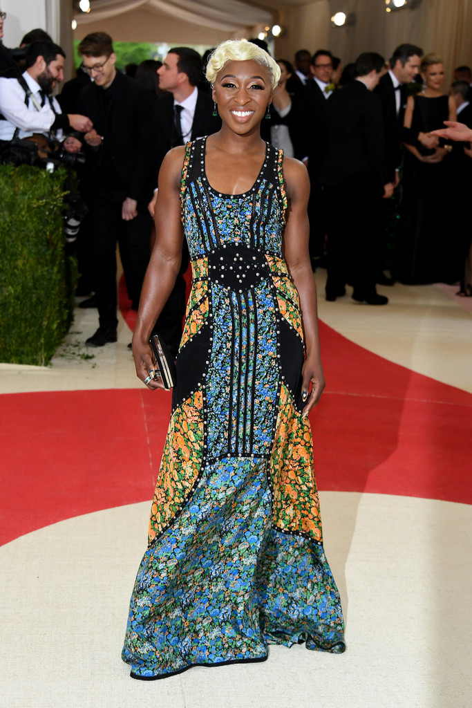 Cynthia Erivo was also clad in Coach, in a patterned gown from the brand. Also, too-pared down in my opinion, but I did love her platinum hair.