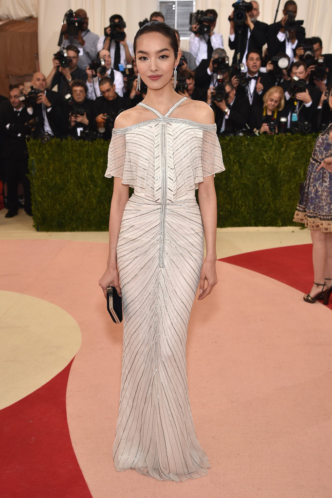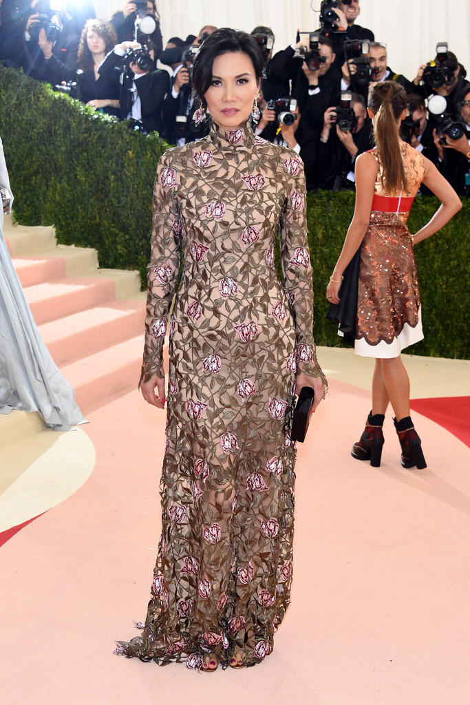 Wendi Deng was almost completely covered in a Christopher Kane floral-embroidered gown with a form-fitting silhouette. Gorgeous dress.