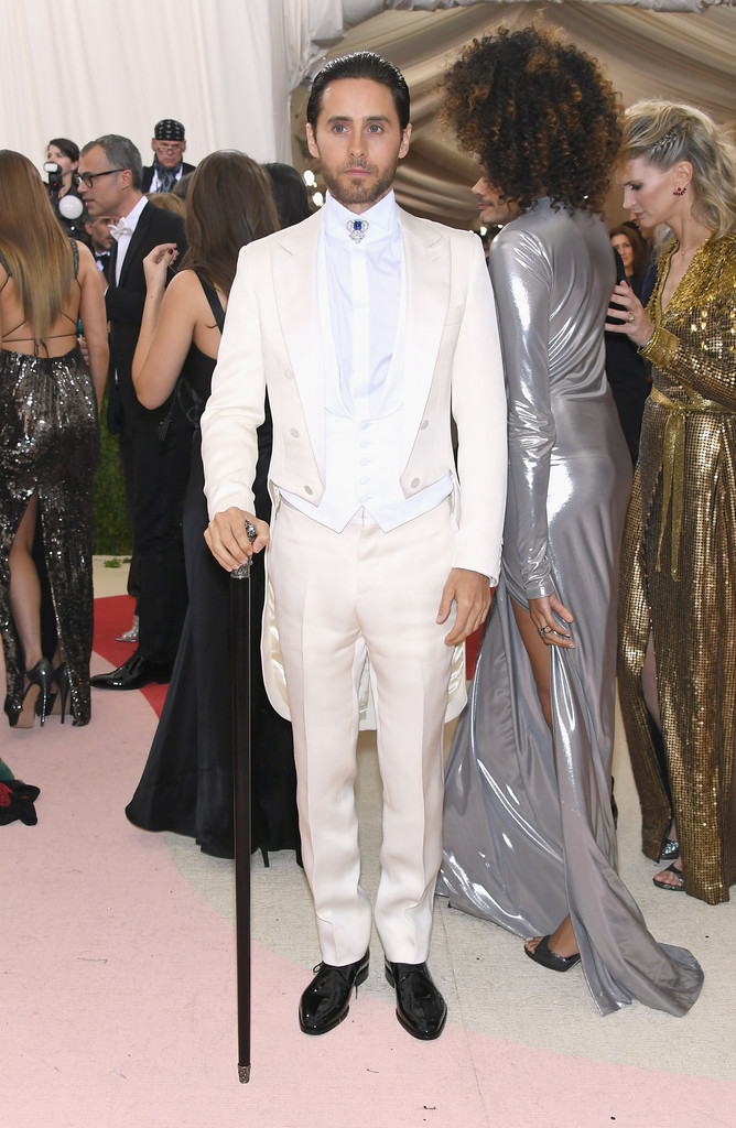 Jared Leto was a stylish angel in a white Gucci suit.