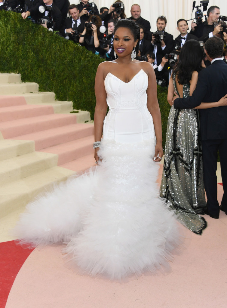 Jennifer Hudson brought the glamour in a strapless white H&M gown with a wispy tulle skirt.