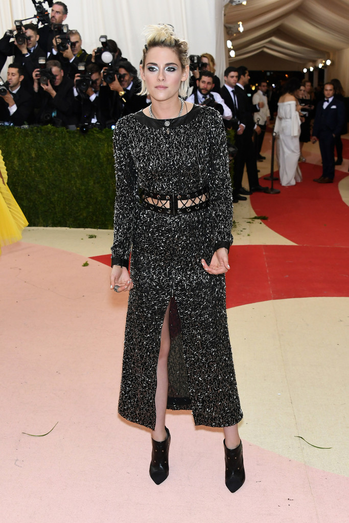 Kristen Stewart glimmered in a beaded Chanel LBD with a lace-up waistband.