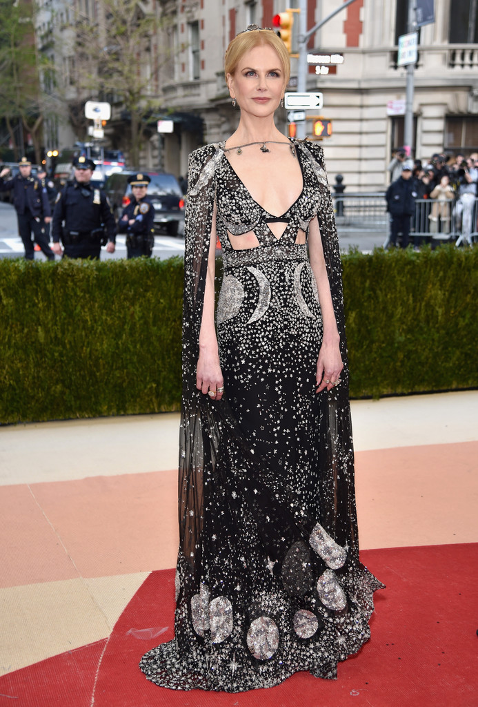 Nicole Kidman was graceful in a cutout, embellished McQueen cape gown.