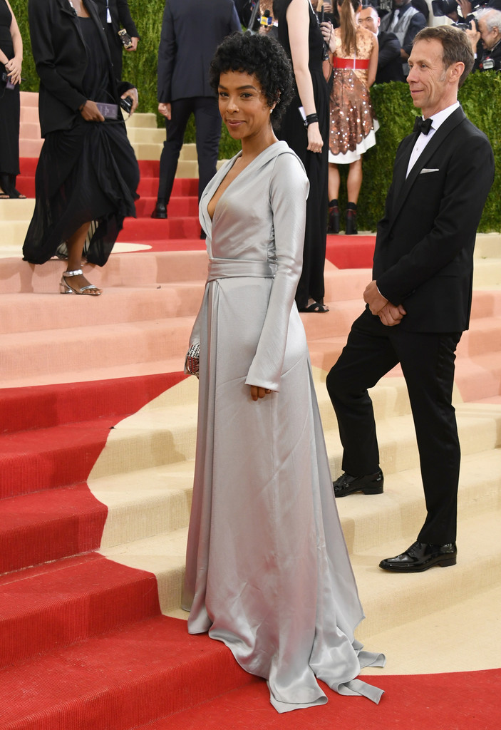 Sophie Okonedo chose an elegant silver, robe-inspired gown.