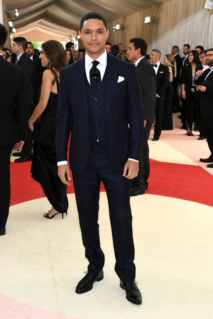 A three-piece navy suit was tailored to perfection on Trevor Noah. There’s absolutely no way that he could be any better looking.