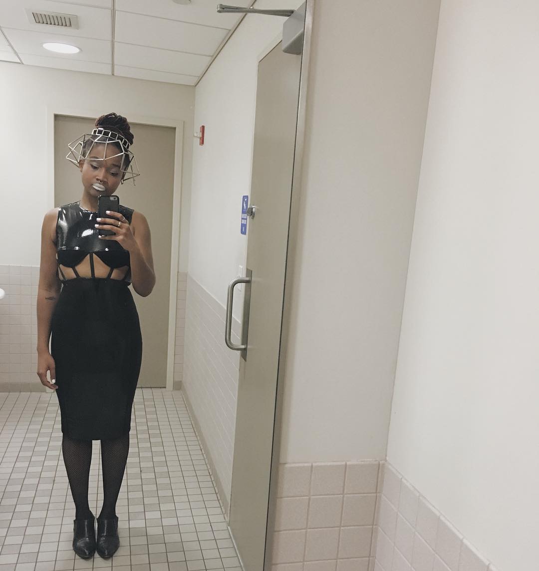 Met Gala looks are starting to roll in! Associate Online Community Producer for the Metropolitan Museum of Art, Kimberly Drew, snapped her look for Instagram—a WXYZ Jewelry Silver Metal Veil and $679 Chromat Black Patent Underbust Dress: