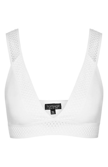 Her V-neck bralette has wide straps and an underbust band of peekaboo mesh.