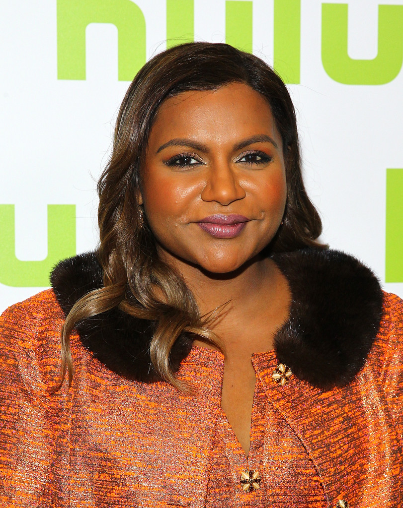 The Mindy Project‘s leading lady Mindy Kaling just confirmed that her hit show will return for a fifth season! The stunning fashionista attended the 2016 Hulu Upfront event to break the news while uplifting a bold ensemble featuring an custom orange and gold mini dress by Salvador Perez, a matching fur-trimmed coat and nude Valentino Rockstud Slingback Pumps.
