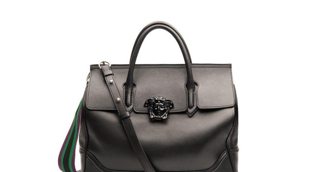 Her purse has the classic Medusa head, made of calfskin leather, and features inner pockets and a shoulder strap.