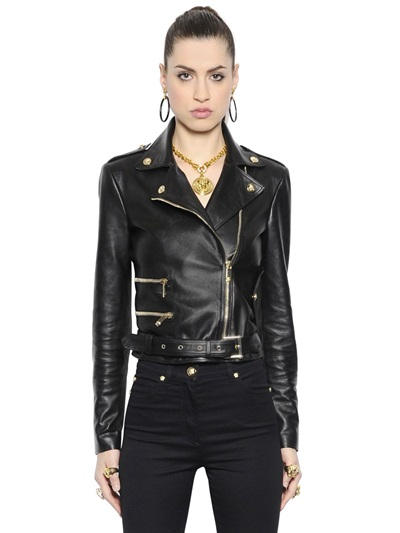 Gigi Hadid was spotted out and about in New York sporting an all black ensemble, Stuart Weitzman shoes, $4,275 Versace Nappa leather black moto jacket and $2,943 Versace Palazzo Empire bag :