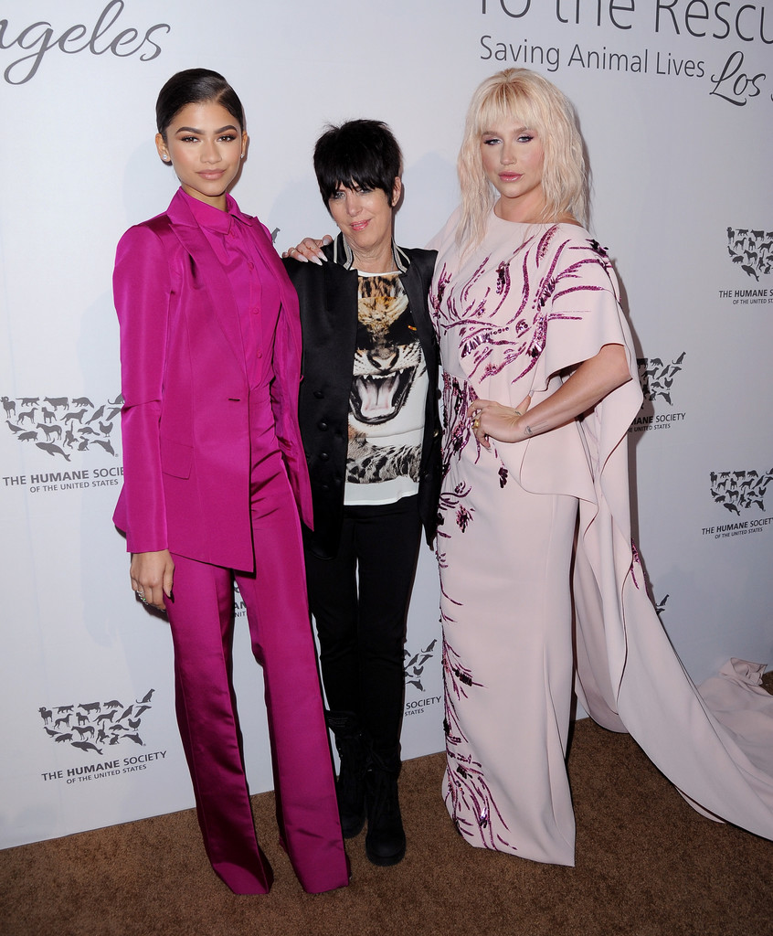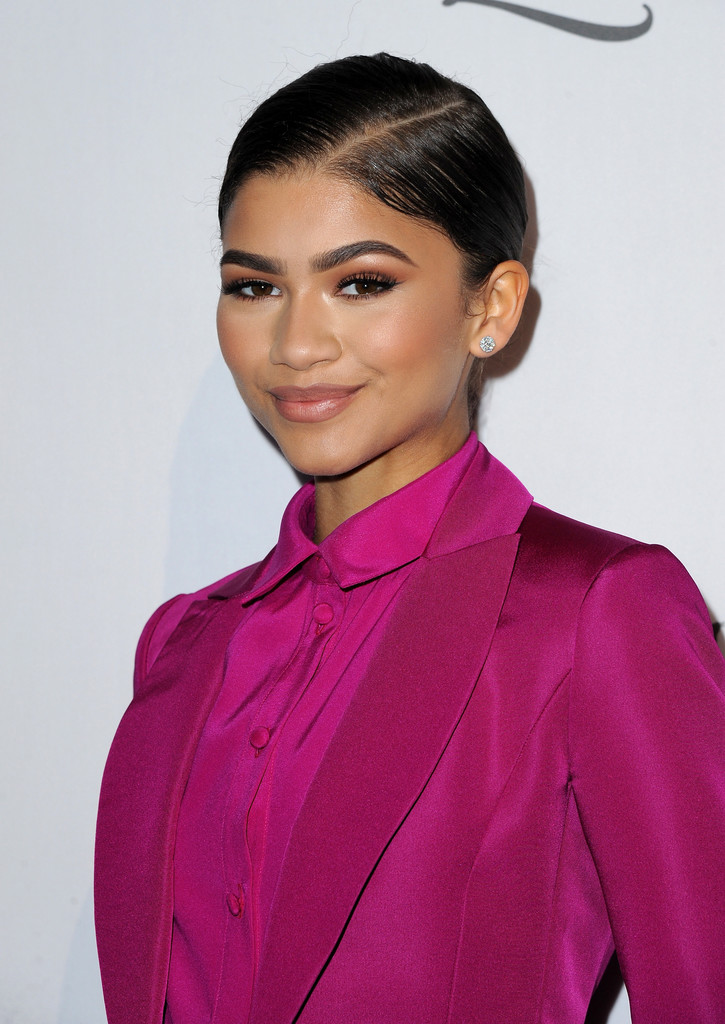 Actress/singer Zendaya Coleman went bold for The Humane Society of the United States Gala as she rocked a jaw-dropping Christian Siriano Pre-Fall 2016 magenta blazer, a satin button-up blouse and matching wide leg pants. She accessorized with Simon G Jewelry.