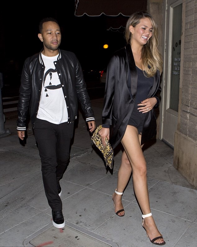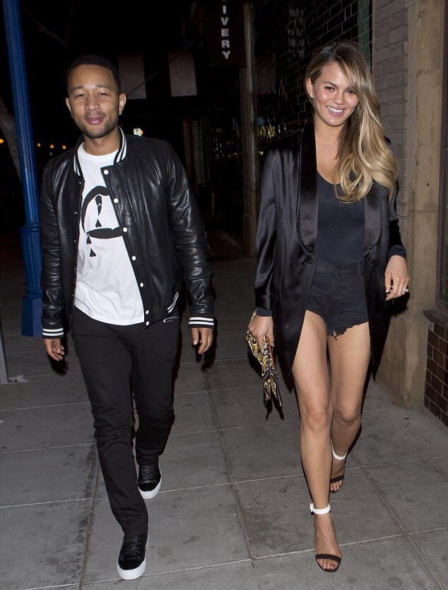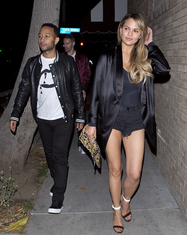 Okay, let’s all sit back and take a minute to observe the Ultimate Snapback (can we make that nickname official?) that is Chrissy Teigen. Three weeks after the birth of beautiful baby girl Luna Simone, Chrissy and her pre-summer summer body hit up Los Angeles hot spot Jones Bar for a date night with hubby, musician John Legend. Mommy duties haven’t made the supermodel any less stylish. Chrissy dressed up a black leotard and black denim cut offs with a $3,267 Givenchy Deconstructed Black Tuxedo Jacket and a $790 pair of Gianvito Rossi ‘Portofino’ Black and White Ankle Strap Sandals. The black silk deconstructed tuxedo jacket from Givenchy features a front button fastening and cut out details.