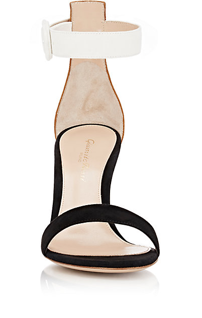 The supermodel beamed as she showcased those enviable legs in Gianvito Rossi’s ‘Portofino’ sandals. At a comfortably sassy height of 3.25 inches, these black, off-white and tan suede sandals are perfect for a simple date night slay.