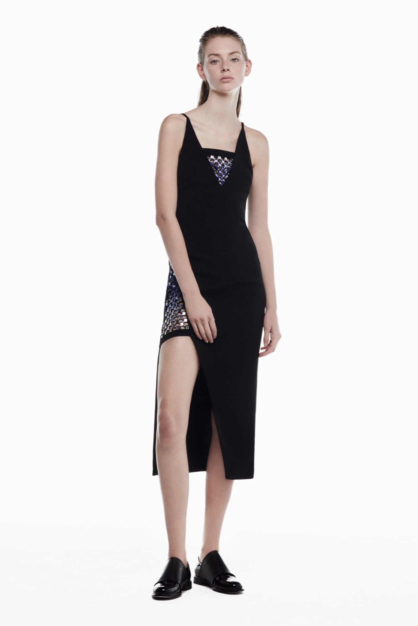 The gown isn’t available for purchase yet, but you can shop David Koma’s Spring collection here and her Jimmy Choo sandals here.