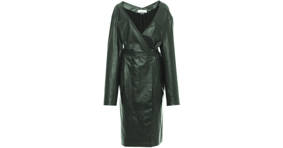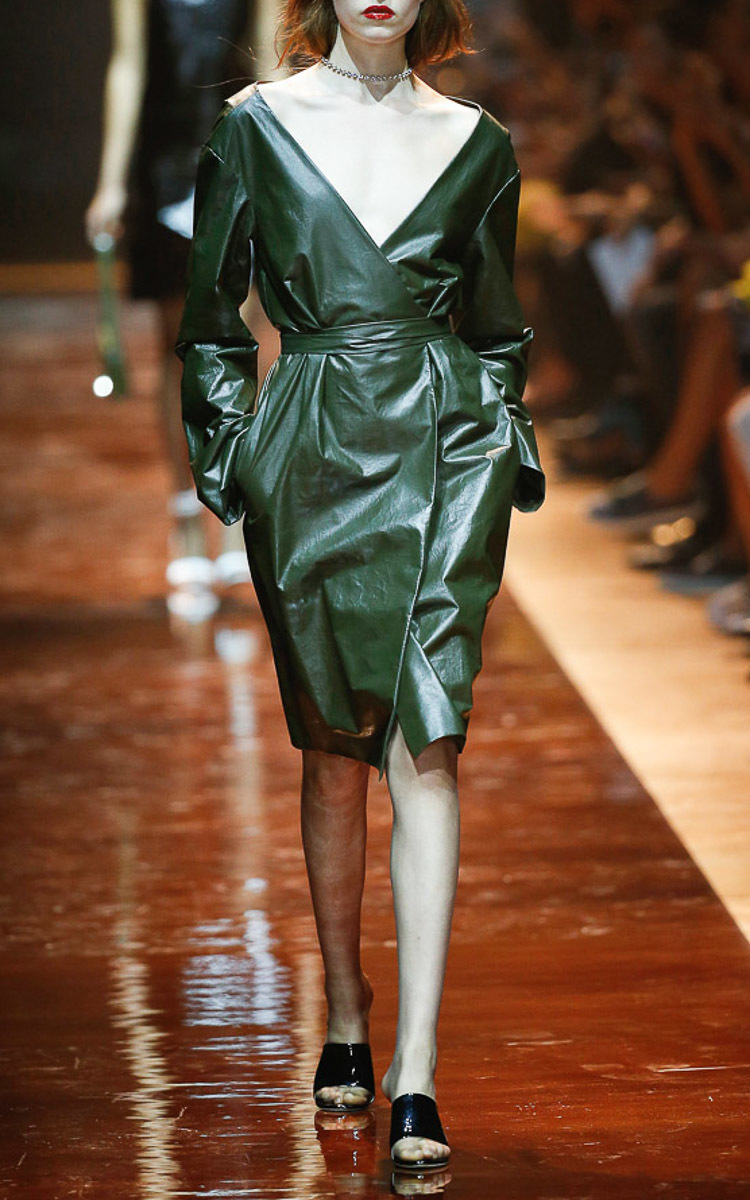 Seen in Ricci’s Spring/Summer 16 collection, the coat, which Rih cleverly made into a dress for the evening, features a tie waist, is made of 100% lamb leather (sorry PETA) and is fully lined while sporting this beautiful mossy green.