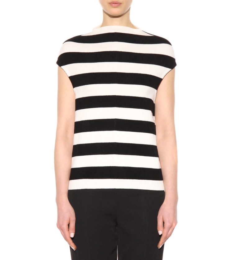 Victoria Beckham knits this top with a bold black and ivory stripe for a graphic look that will add interest while keeping your look monochromatic.