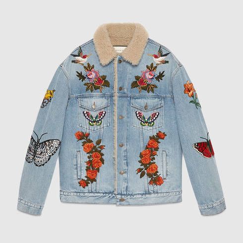 Although not the exact same, Bey’s jacket definitely contains intricate embroidery throughout the frame, with animal motifs and phrases patched on. You’ll see many of the recurring Gucci themes here, including birds, flowers, the lion and butterfly.