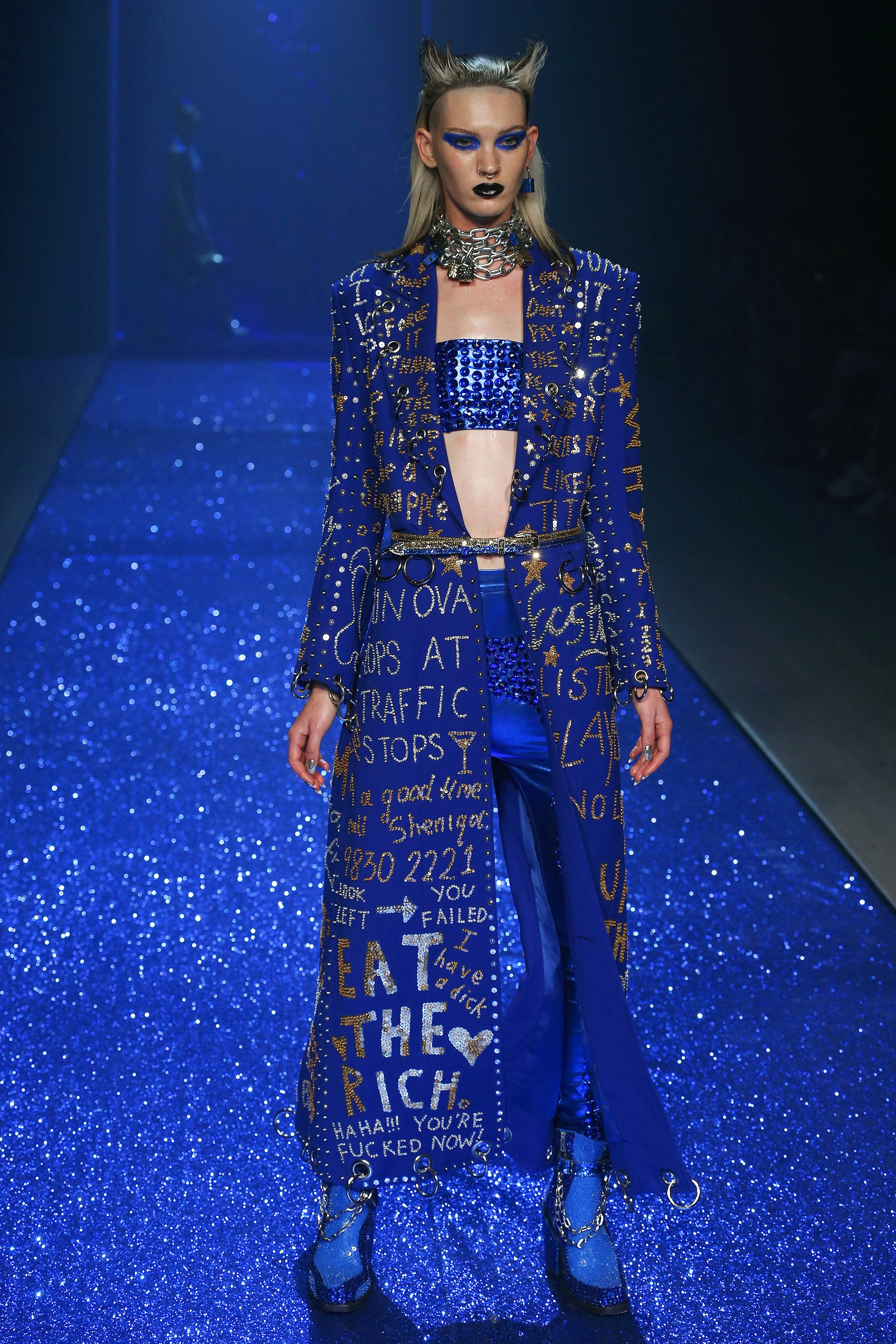 This season is the brand’s first runway show at Fashion Week, which is a great feat considering that many brands all over the globe are foregoing catwalk presentations. We’ll definitely be seeing these pieces on stars this Summer: a cobalt blue studded jacket worn backwards screamed Rihanna and a pair of embellished denim seemed to be right up Gaga’s alley.