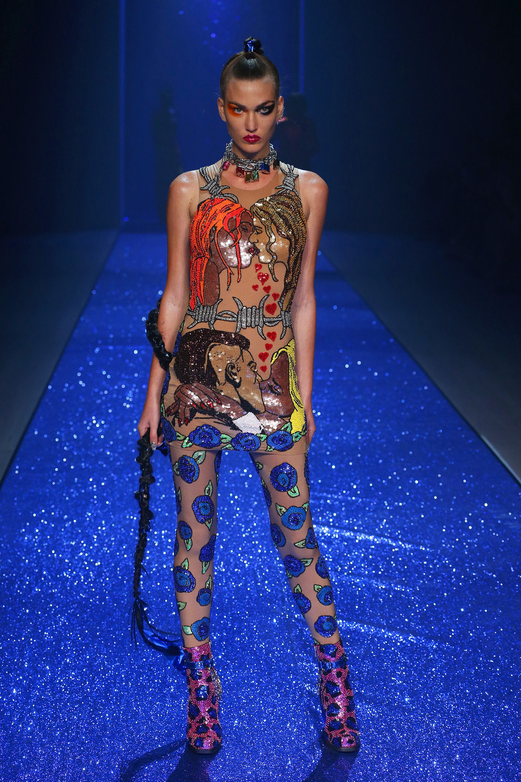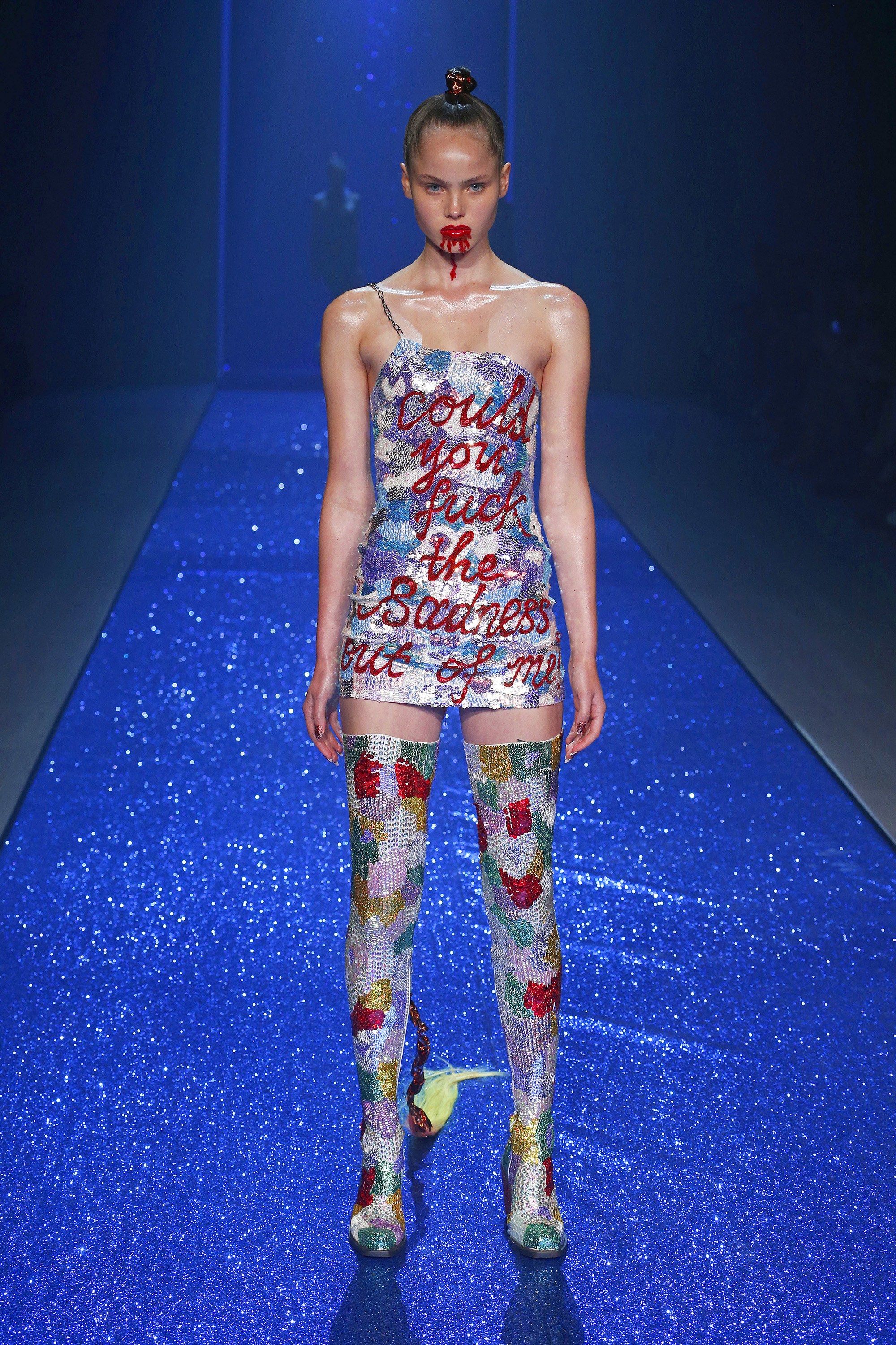 Fun fact: Katy Perry actually discovered Di$count Univer$e through Instagram! And the duo is using these mediums to really expand the traditional notion of the fashion industry. The balance of power is shifting from the style elite to the consumer and social influencer. And when you’re sporting pieces like thigh-high, multicolor embellished boots and sheer graphic catsuits, perhaps fashion’s big wigs will throw you some shade, but this daring and fearless generation of head turners certainly will not. This is Anna dello Russo on steroids: minimalism simply does not live here.
