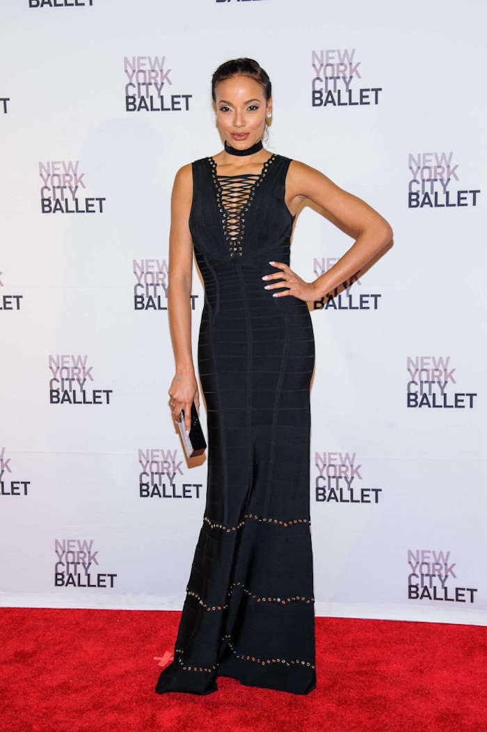Mariah Carey was spotted out and about in New York City outfitted in the same the same $1,990 Herve Leger Sleeveless Lace Up Embellished gown that model Selita Ebanks wore to 2016 New York City Ballet Spring Gala earlier this month:
