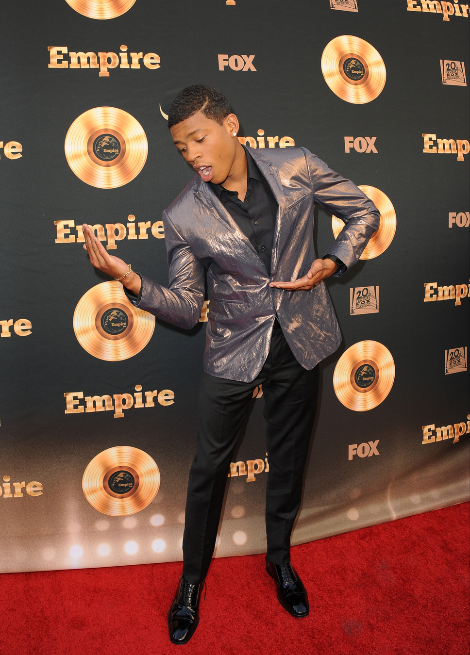 Bryshere Gray looked dapper in a metallic blazer on top of a black button up shirt and black slacks.