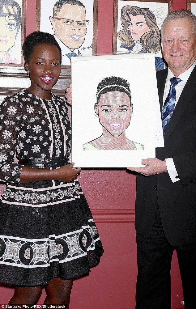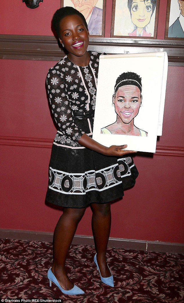 Lupita Nyong’o hit up Sardi’s to get her caricature drawn rocking a $6,075 Elie Saab Pre-Fall 16 Floral Dress: