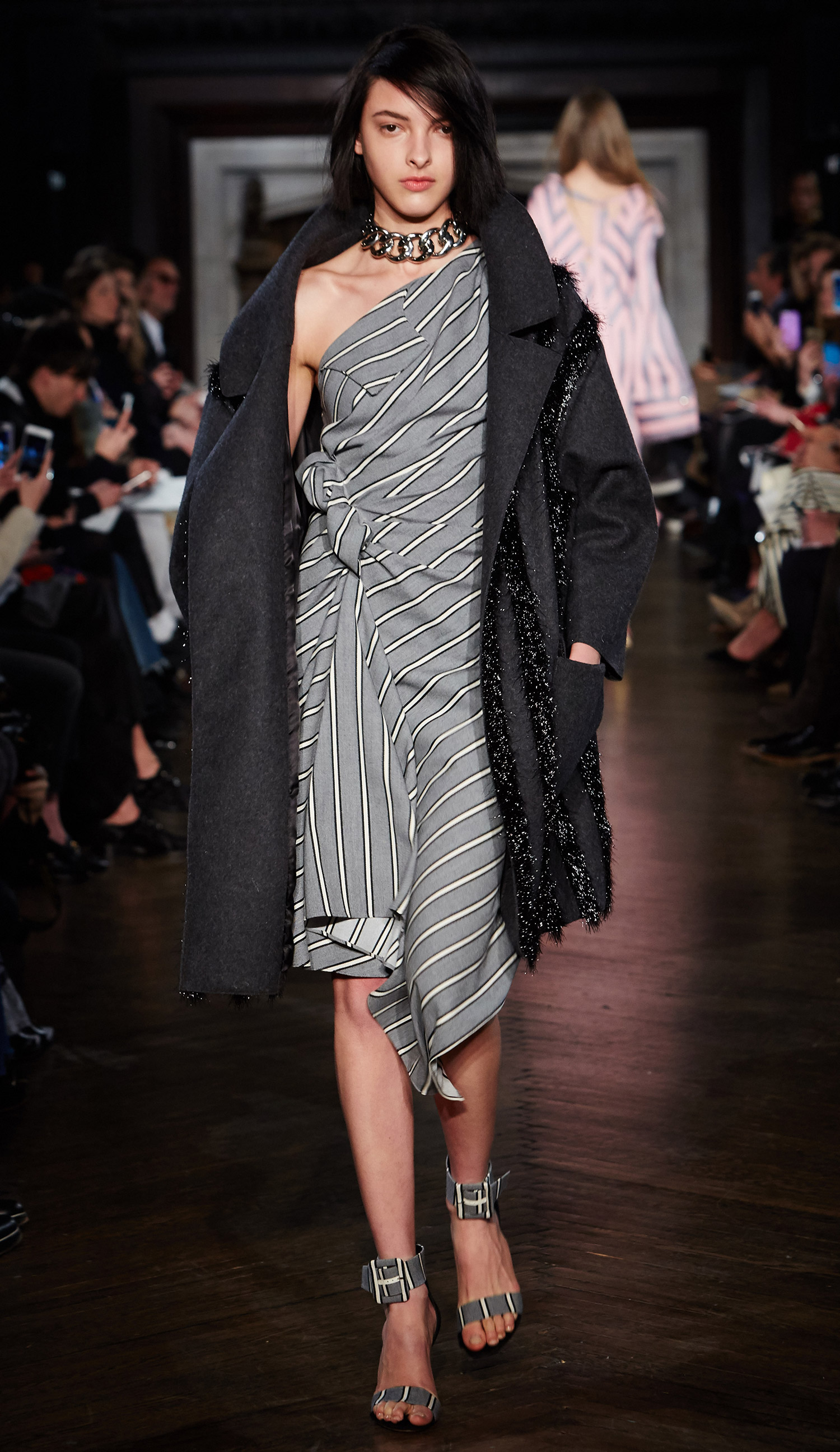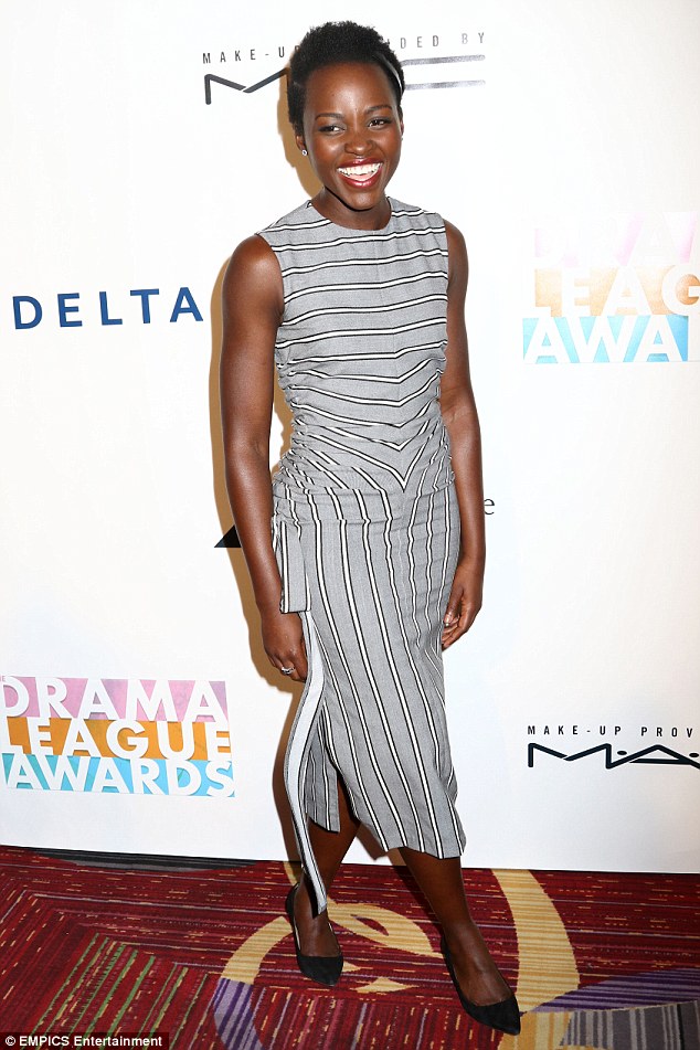 I love to catch Lupita out because I know she’s never going to disappoint! She stepped out yesterday to attend the New York Drama League Awards, clad in a grey and white stripped Monse Fall 2016 dress:
