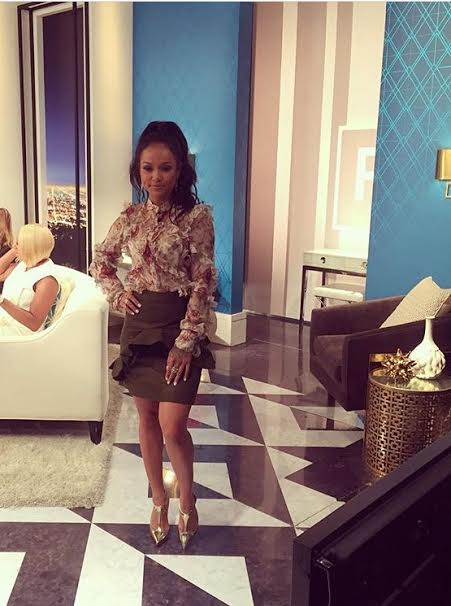 Karrueche hit up the Fashion Police stage to dish on the Billboard Music Awards highlights and low-lights wearing a $1,317 Alexander McQueen Long Sleeve Ruffle Medieval Floral Blouse, a $390 MSGM Spring 2016 Ruffled Cotton-blend Faille Mini Skirt and a pair of $945 Christian Louboutin J String Pumps: