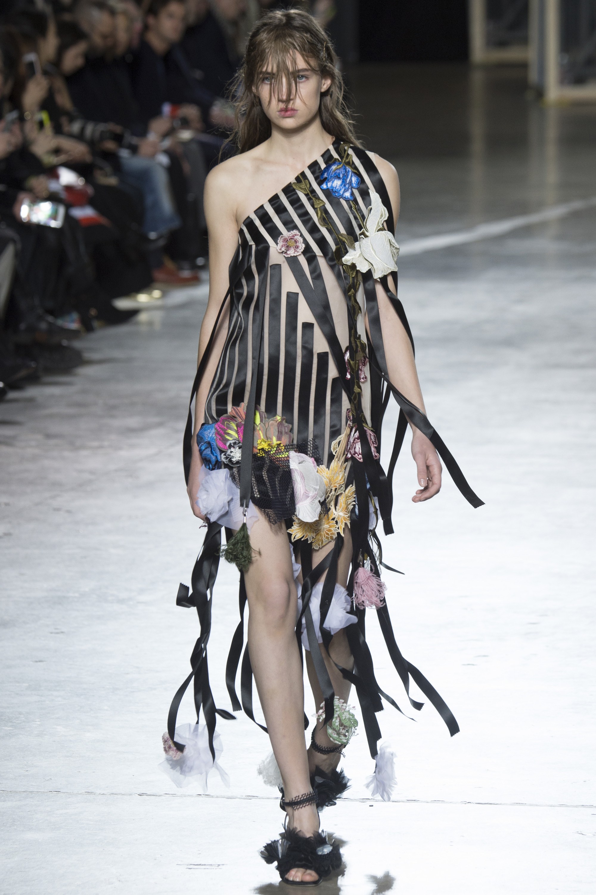 Although her exact look wasn’t showcased on the runway, Christopher Kane did debut a few similar designs which include similar stripes and (of course) the in-your-face florals.
