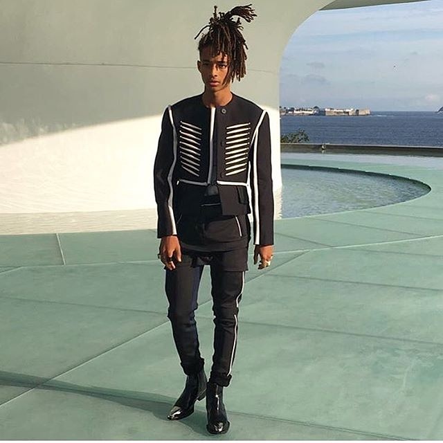 Jaden Smith smized in a Fall 2016 Louis Vuitton women’s jacket. He pulls it off!
