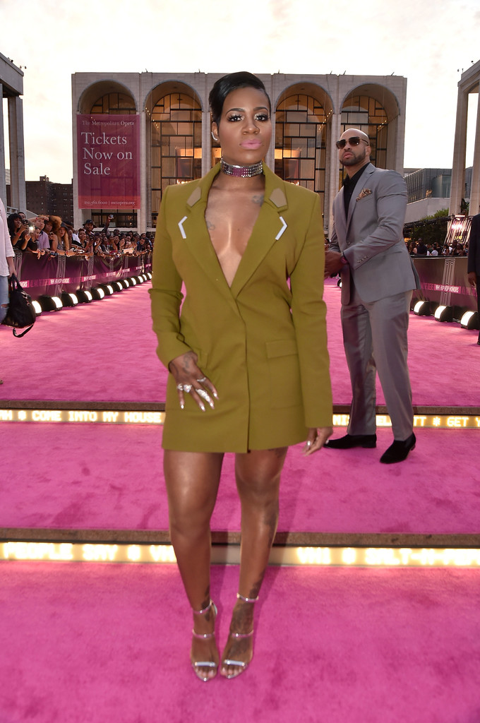 Fantasia showed up and showed out in a Mugler Embellished leather-trimmed crepe mini dress and Giuseppe Zanotti Silver Harmony Sandals.