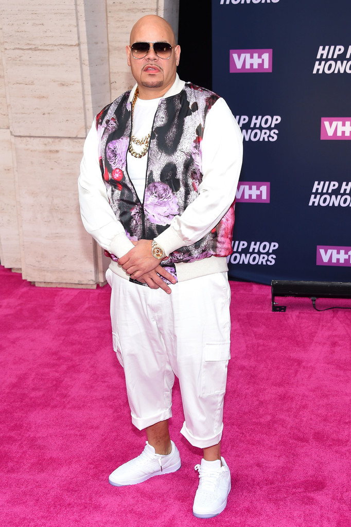 Fat Joe’s rose printed jacket added punch to an all white ensemble.