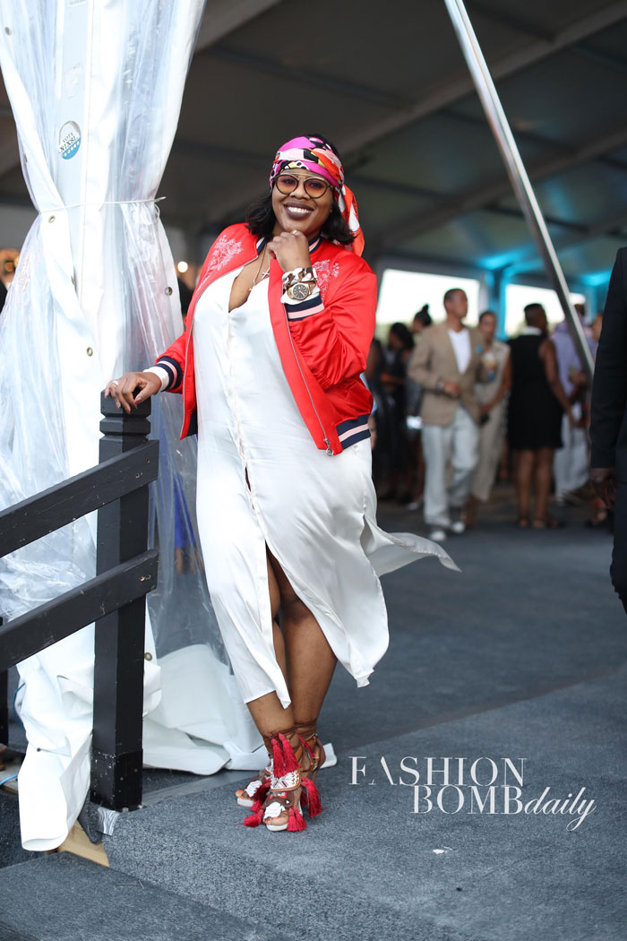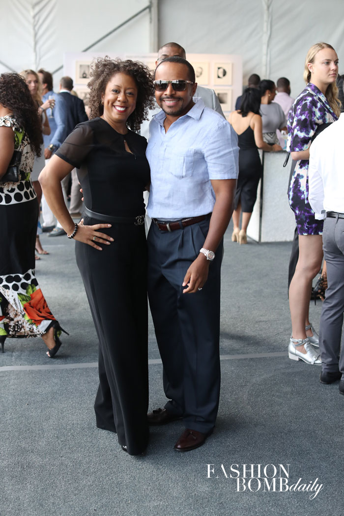 Cofounder and COO of Ceiling Breakers LLC Michelle Gadsden-Williams and CEO of Ceiling Breakers LLC husband David Jamal Williams were in attendance! Michelle looked lovely in a black jumpsuit with Chanel accessories, while David exuded Hamptons cool in blue tones.