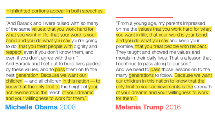 Many are accusing Mrs. Trump of plagiarism. Take a look at the side by side.