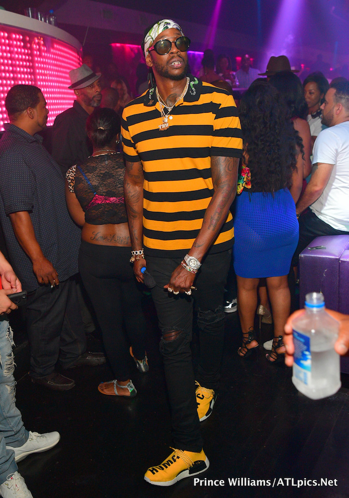 Along with Gucci Mane and Keyshia Kaior, 2 Chainz was at Atlanta’s Privé nightclub yesterday evening wearing a $675 Gucci Striped Polo with Snake Embroidery: