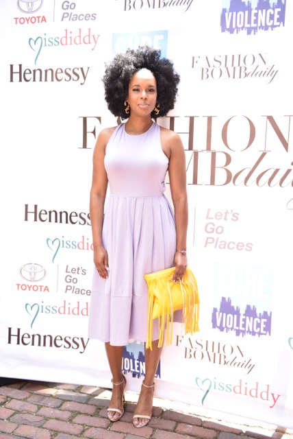 J. Enovy from Chicago’s Tall District rocked a poppin Afro and a lavendar dress. Chic!