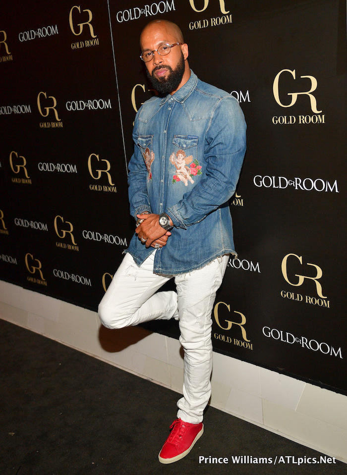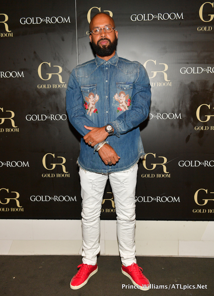 Kenny Burns hosted the festivities in Balmain jean, Saint Laurent sneakers, and a $1,495 Dolce & Gabbana Angel Patch Denim Shirt:
