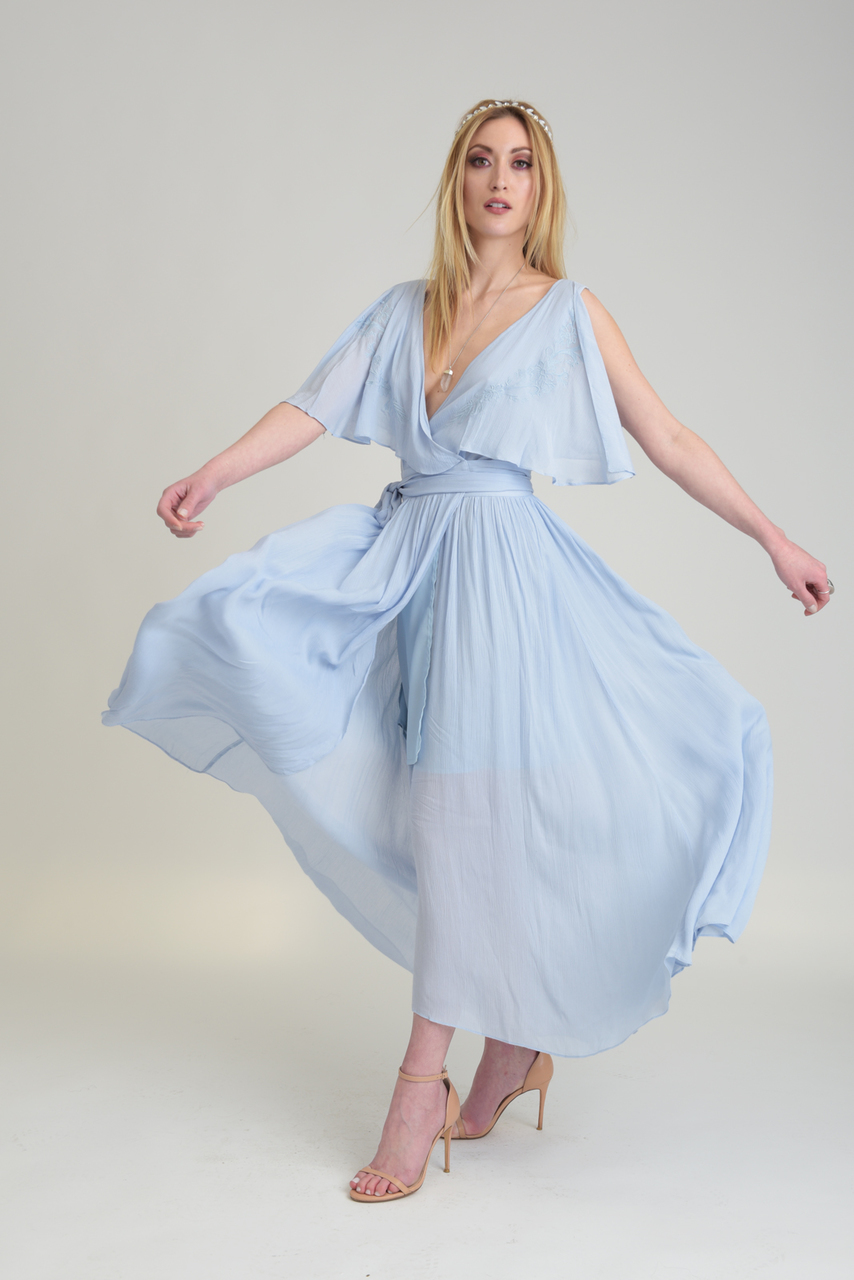 Shop United Front has lots of cute items for less than $100! One of my favorites? Their $58 Blue Short Sleeve Maxi Wrap Dress: