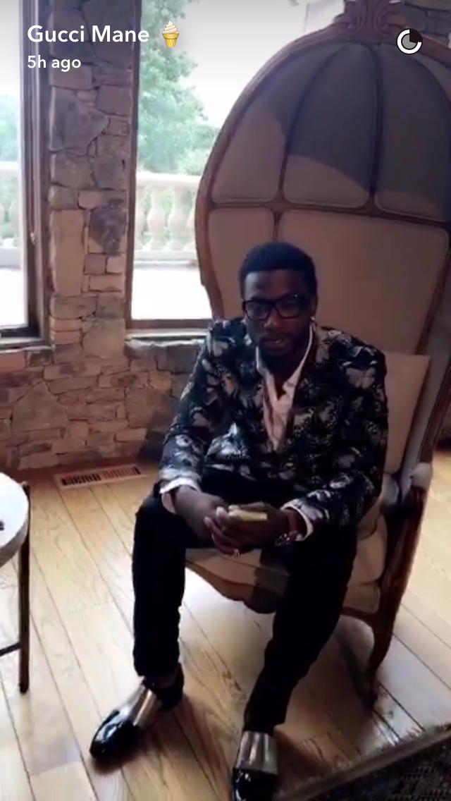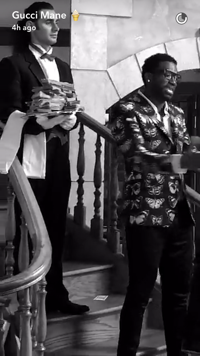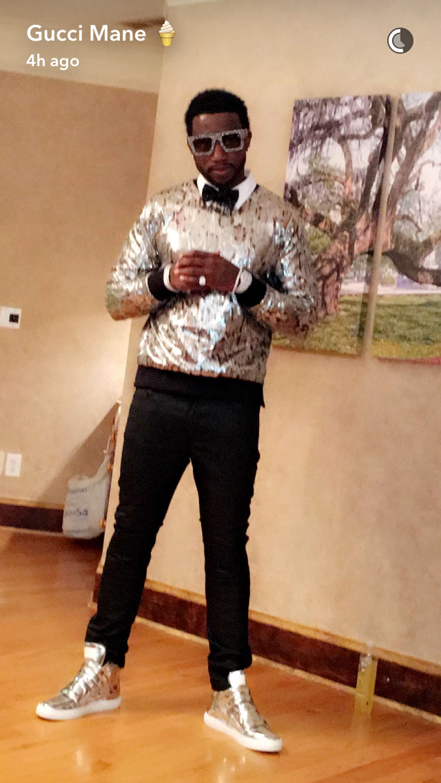 gucci mane snapchat video margiela silver sneakers anna karin glitter sunglasses exclusive access sweater