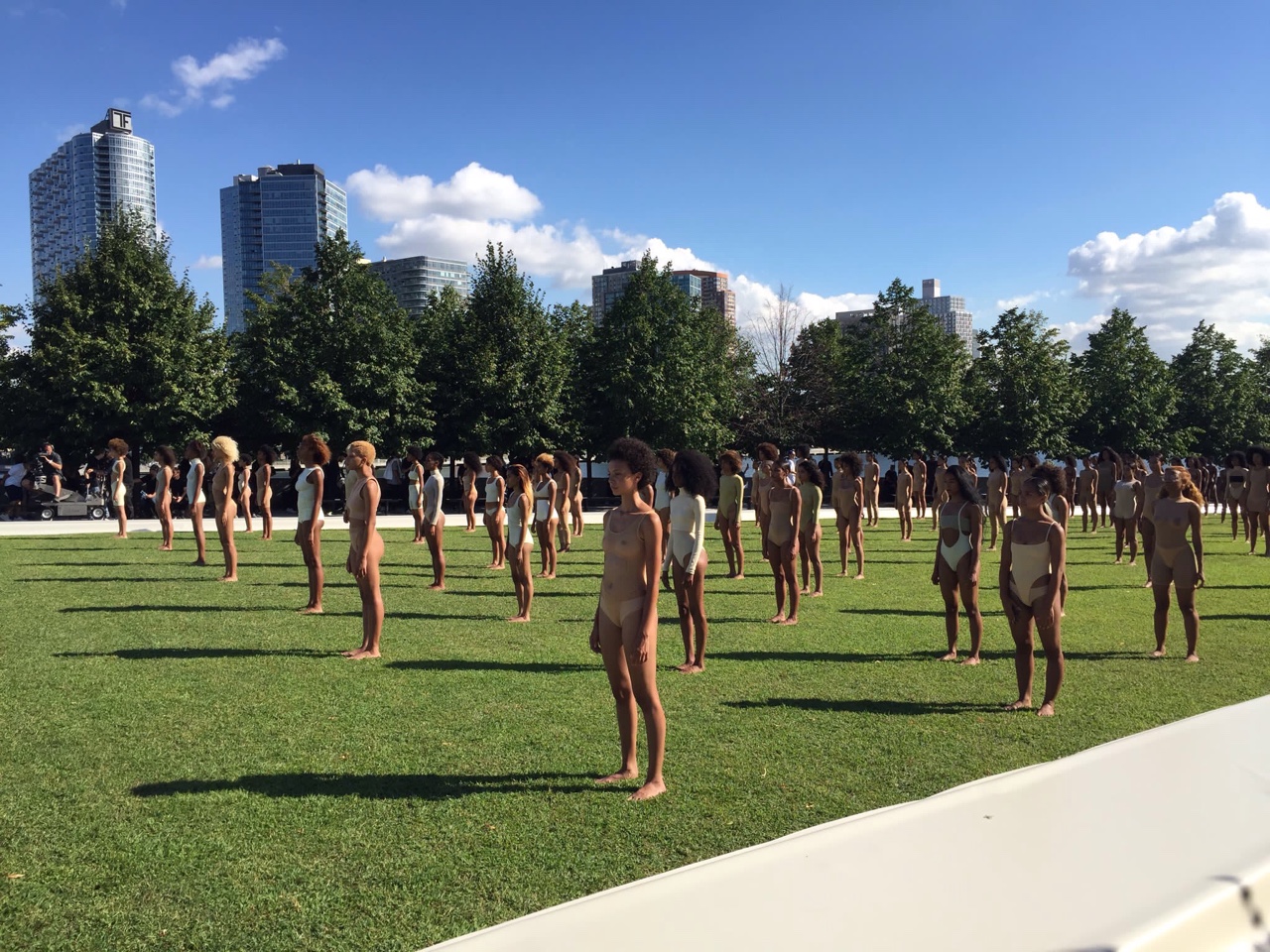 Despite the outrage his call for ‘multiracial’ models elicited, loads of brown beauties and women of various races populated a grassy field, clad in subtle nude and brown tones, surrounded by a white runway.