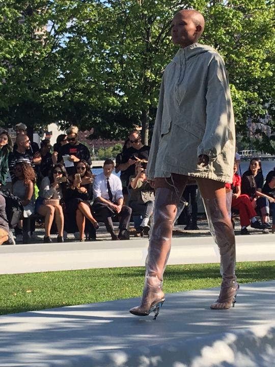 The show was not free of its mishaps; according to one report, a few models fainted in the heat. Several of the shoes broke, leaving models hobbling down the runway, or simply taking off their shoes so they could complete the loop without bodily harm. The sight of step impaired models was somewhat dismaying, given the popularity of Yeezy’s shoe selections (though we’re sure West will correct for this by time of production).