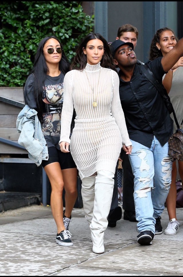Kim Kardashian, Kendall Jenner, and Kylie Jenner sat front row and snapped selfies in cream colored and beige ensembles accessorized by suede and clear boots; a foreshadowing of what viewers could expect this season.