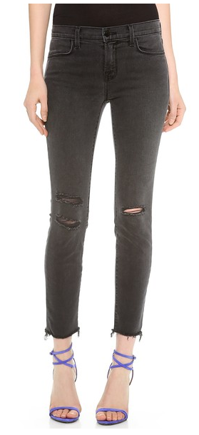 Kim Kardashian’s $227 jeans have ripped knees and a frayed hem.